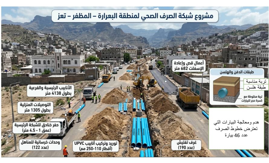 وكان مدير المشروع، باسم العريقي، قد قدم عرضاً مفصلاً حول الأهداف البيئية والاجتماعية للمشروع، ودوره في تحسين المظهر العام للمنطقة والحد من المخاطر الصحية، إضافة إلى العائد الاقتصادي المترتب على تحسين البنية التحتية في منطقة البعرارة.